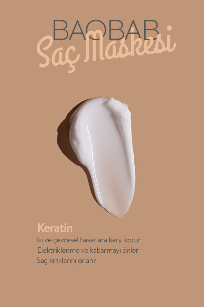 Baobab Yağlı Saç Maskesi, Yıpranmış Saçlar İçin Derin Nemlendirme ve Güçlendirme, 250ml, Vegan